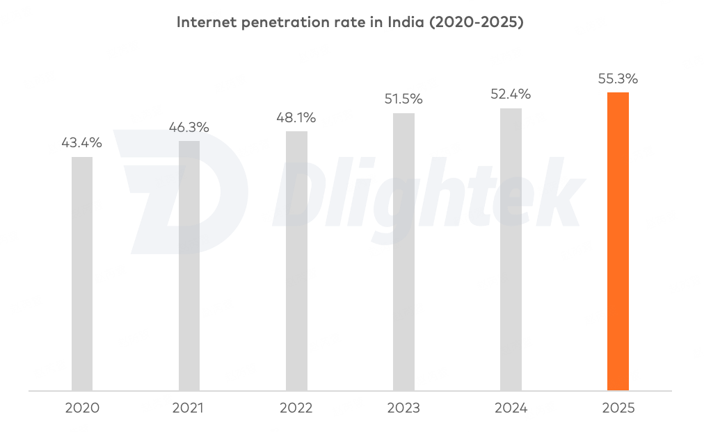 Internet penetration rate in India (2020-2025)