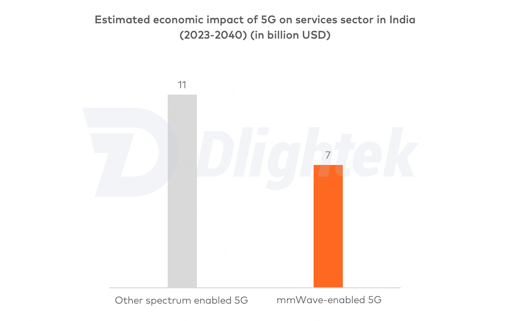 Estimated economic impact of 5G on services sector in India (2023-2040) (in billion USD)